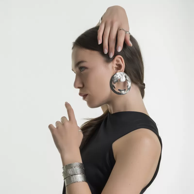 Bu tasarımda pirinç üzeri gümüş kaplama kullanılmıştır.