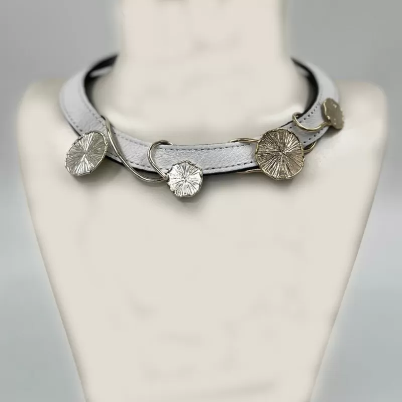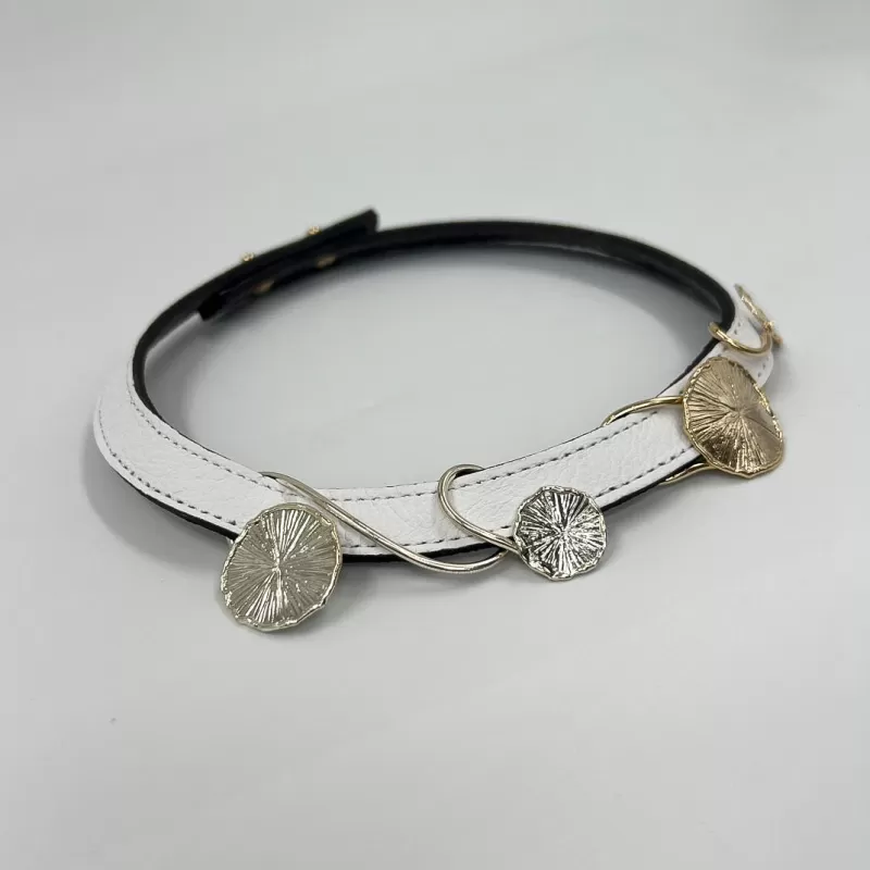 Bu tasarımda pirinç üzeri 24 ayar altın-gümüş kaplama ve yüksek kalite dana derisi kullanılmıştır.