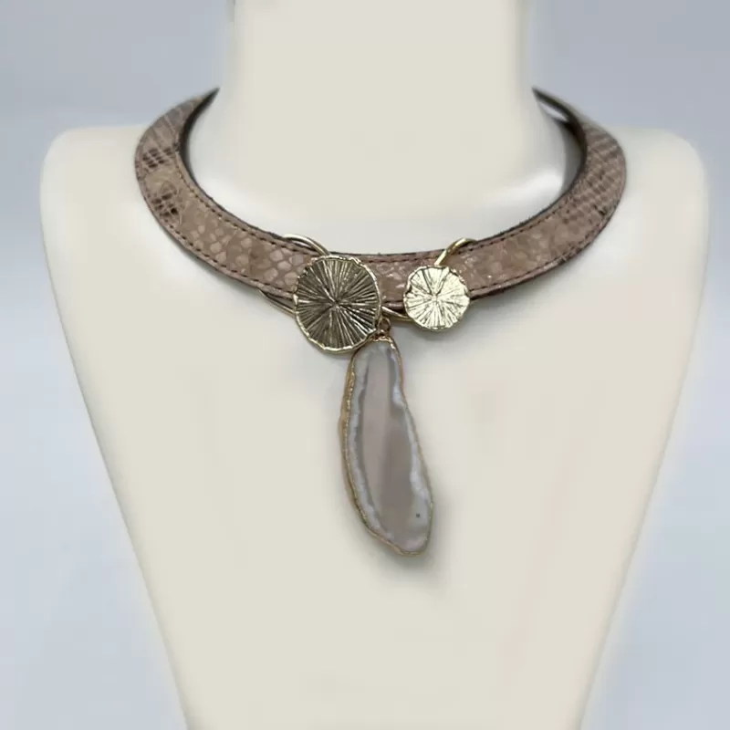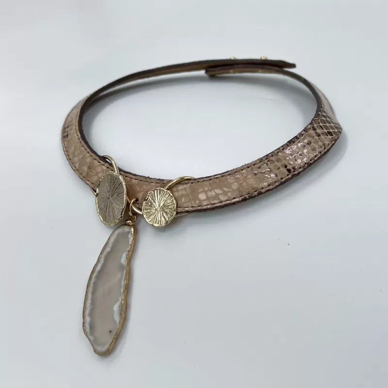 Venüs Due Gold Taşlı Baskılı Vizon Derili Tasma