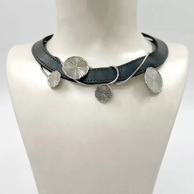 Bu tasarımda pirinç üzeri gümüş kaplama ve yüksek kalite dana derisi kullanılmıştır.