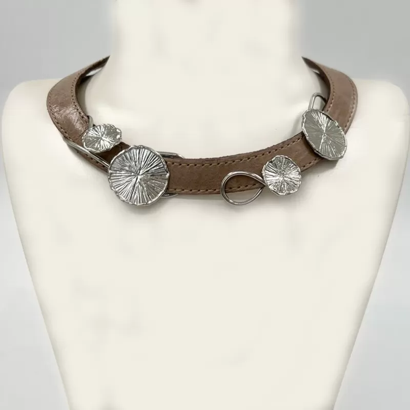 Bu tasarımda pirinç üzeri gümüş kaplama ve yüksek kalite dana derisi kullanılmıştır.