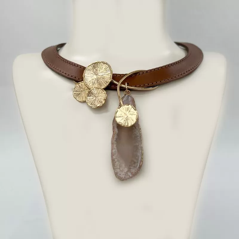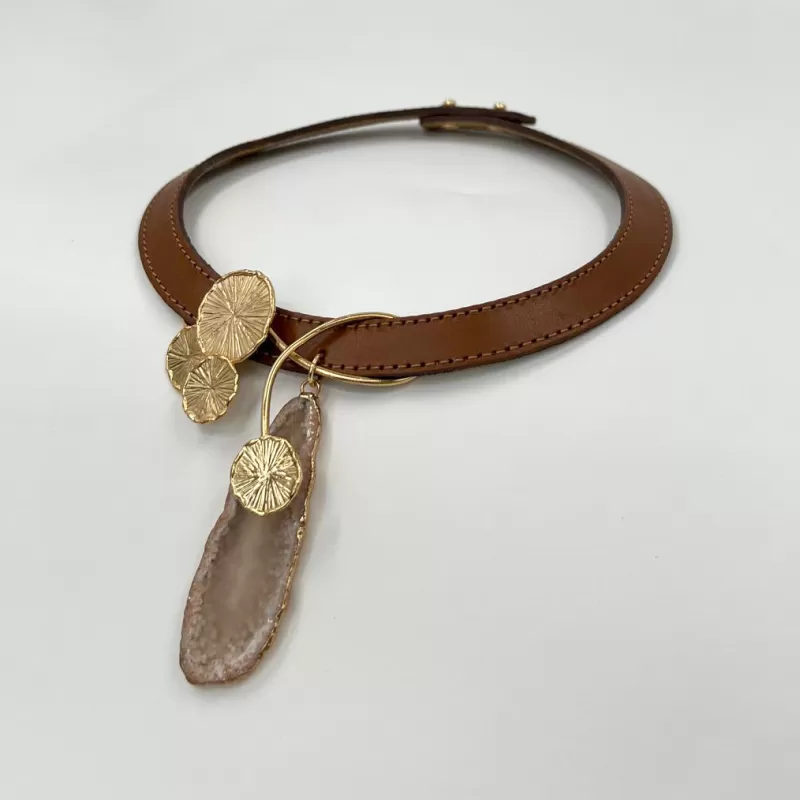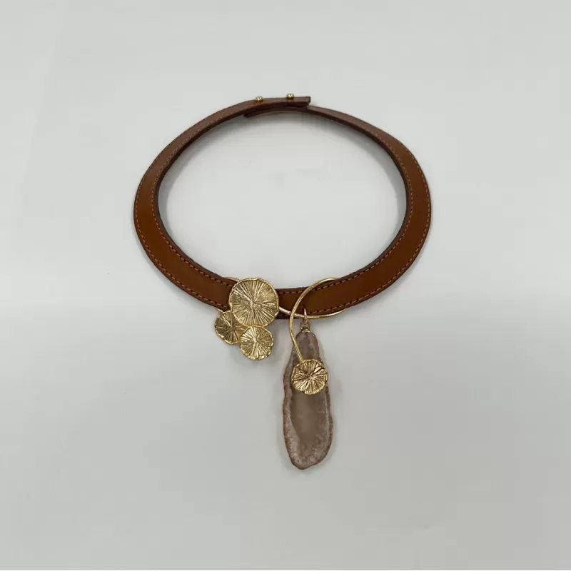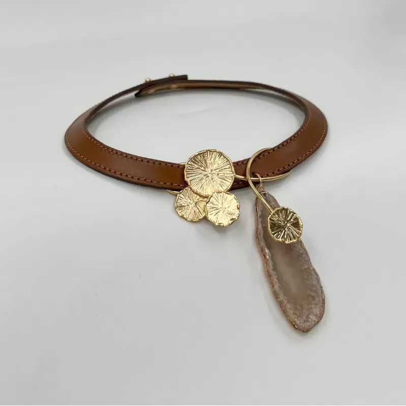 Venüs Mini Tris Gold Taşlı Camel Derili Tasma