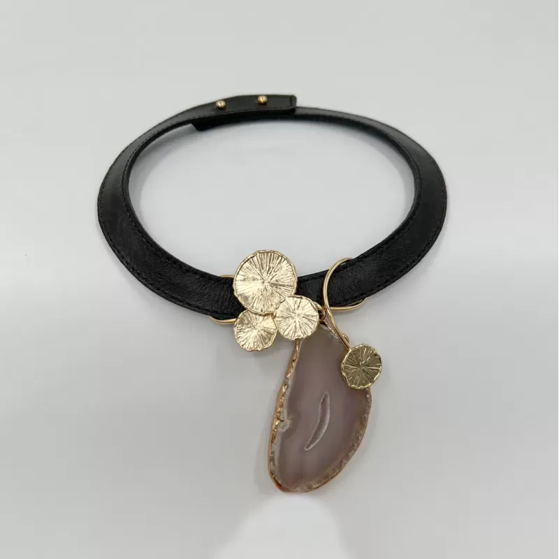 Venüs Mini Tris Gold Taşlı Kahve Derili Tasma