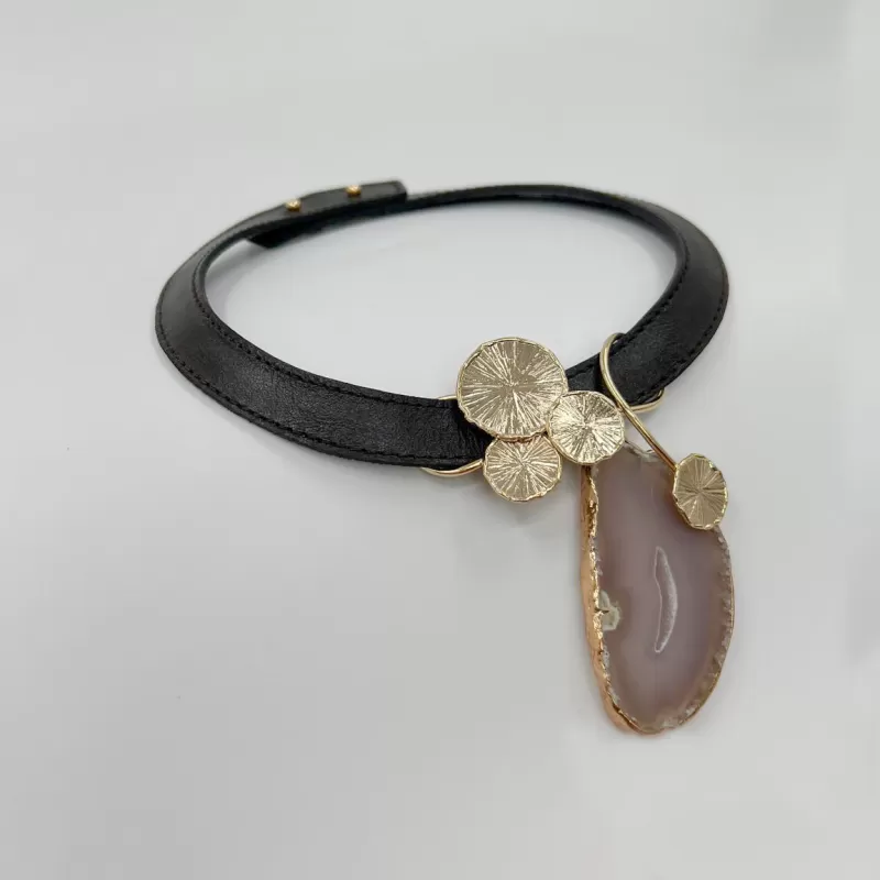 Bu tasarımda pirinç üzeri 24 ayar altın kaplama ve yüksek kalite dana derisi kullanılmıştır.