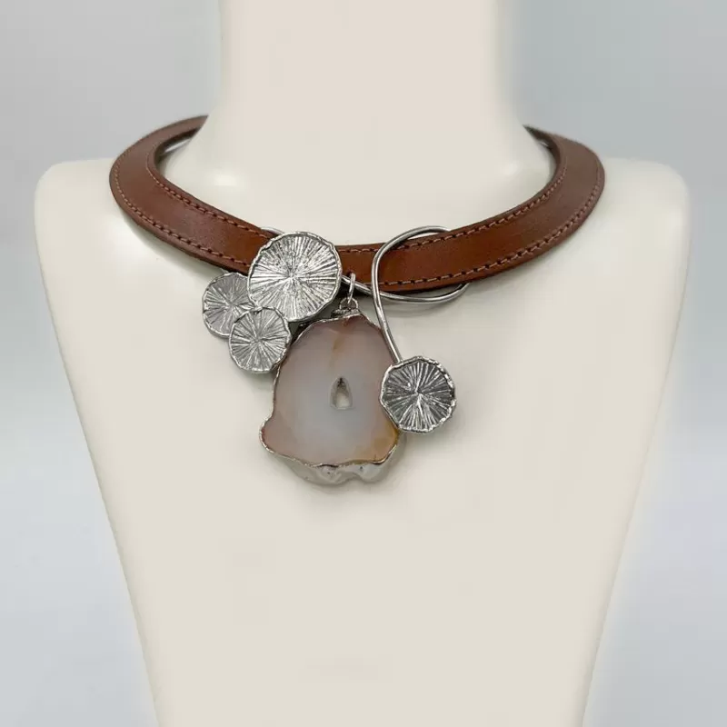 Bu tasarımda pirinç üzeri gümüş kaplama ve yüksek kalite dana derisi kullanılmıştır.