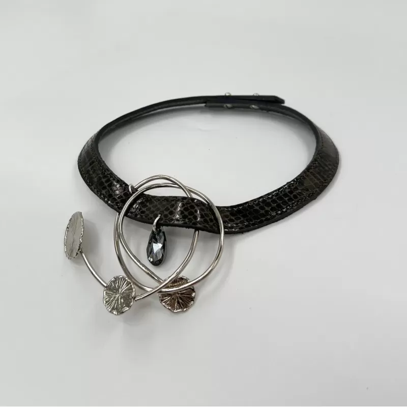 Bu tasarımda pirinç üzeri gümüş kaplama ve yüksek kalite dana derisi kullanılmıştır.